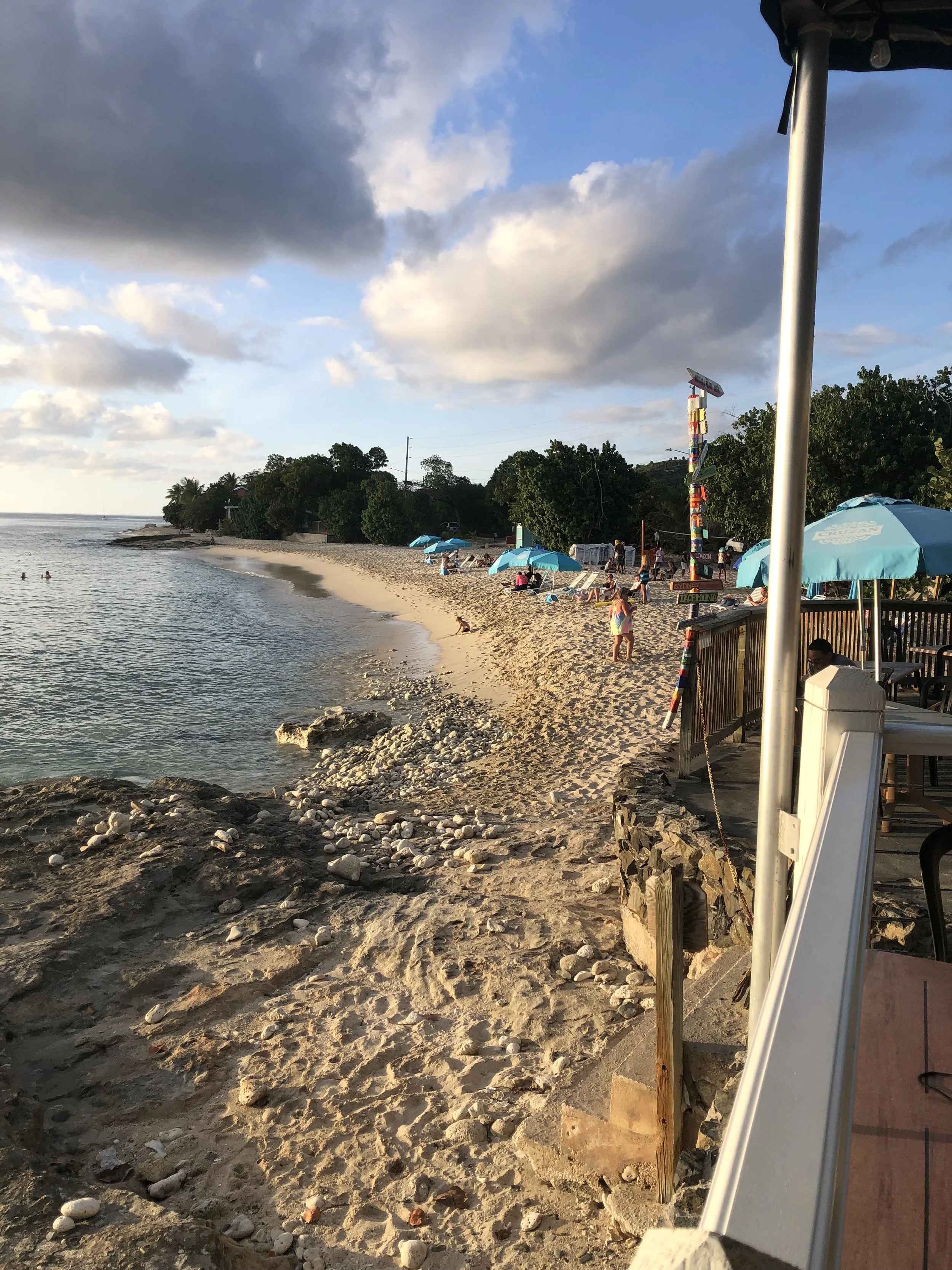 Mermaid - east end north shore. Manicured beach at The Buccaneer Resort. At the Buccaneer guard house, tell them you are going to the beach. Bar/restaurant on the beach.