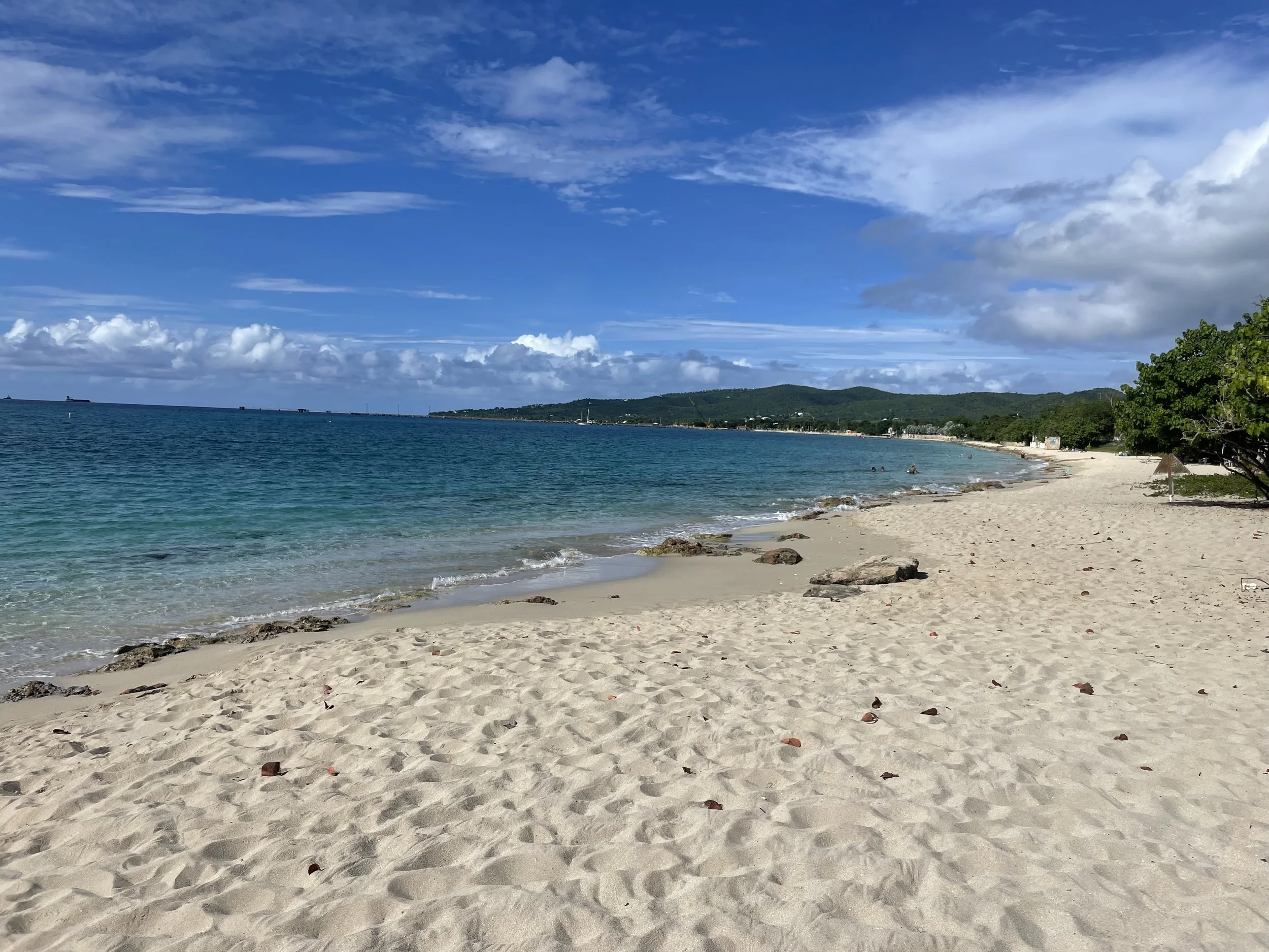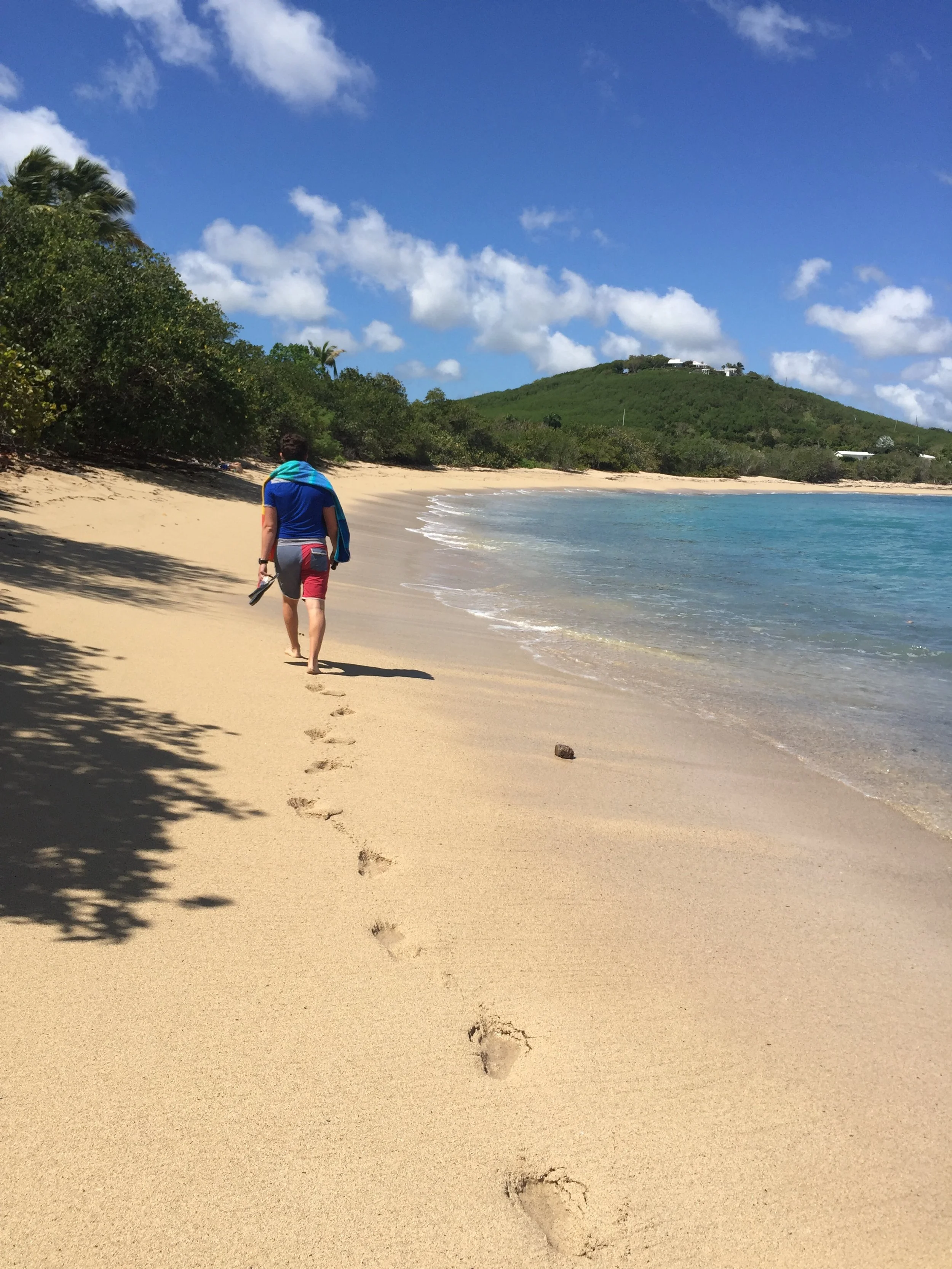 Isaac’s - far east end, south shore. Just before you get to Point Udall, park in the small lot and hike down 20 minutes to a gorgeous, uncongested beach. Bring water and sunscreen.